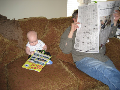 Sure, they look cute and cuddly. But sadly, both of them are(were) monsters. The past 3 weeks, Quin has been fighting the bottle from his daddy-oh. Meanwhile, Kajsa's been trying to pull some strings more often than not.... jumping at the chance to take advantage of any parental struggle (she'll make a brilliant sociopath someday). On Friday however, February 8th... Dr. Brown's bottles came in via UPS, and changed everything. Quin only reluctantly takes the bottles after 3-5 minutes of whining, instead of 60 minutes of screaming bloody murder. All is well again, and we keep moving foward (we recently watched Meet the Robinson's on DVD with Kajsa).